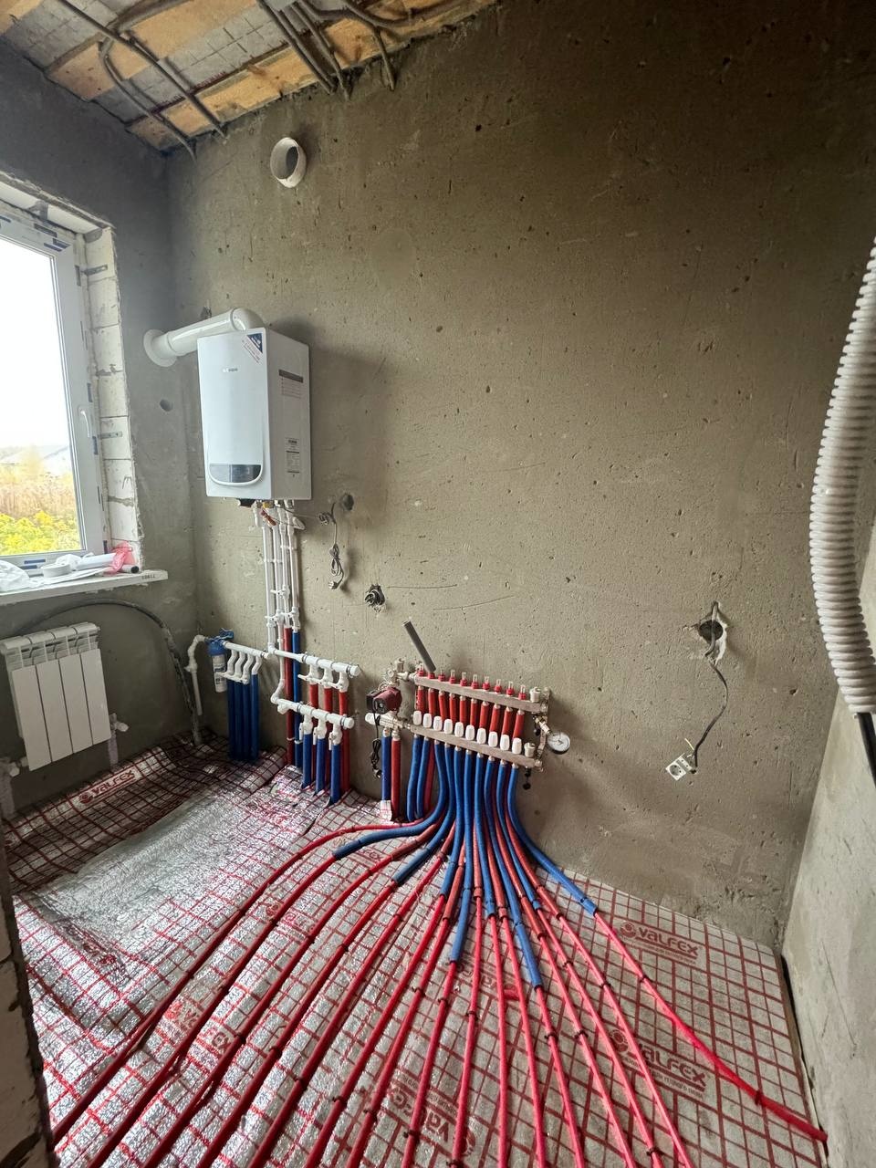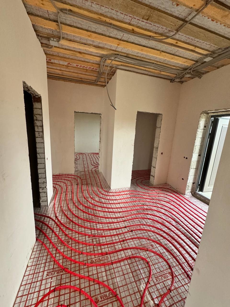 Выполнена разводка электропроводки, водоснабжения и водоотведения, отопление тёплые полы и батареи, отделка вайт бокс, идеально ровные стены и полы.